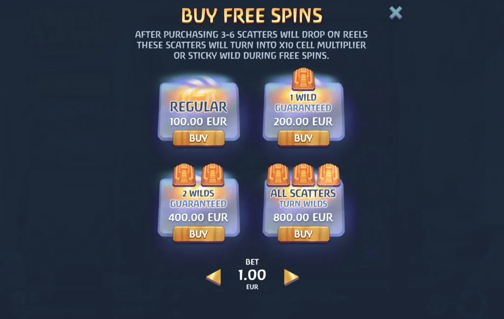 Você pode obter uma vitória máxima de x10.000 durante qualquer ponto do jogo, seja o jogo base, Wild Spins ou qualquer nível do recurso Bonus Buy.