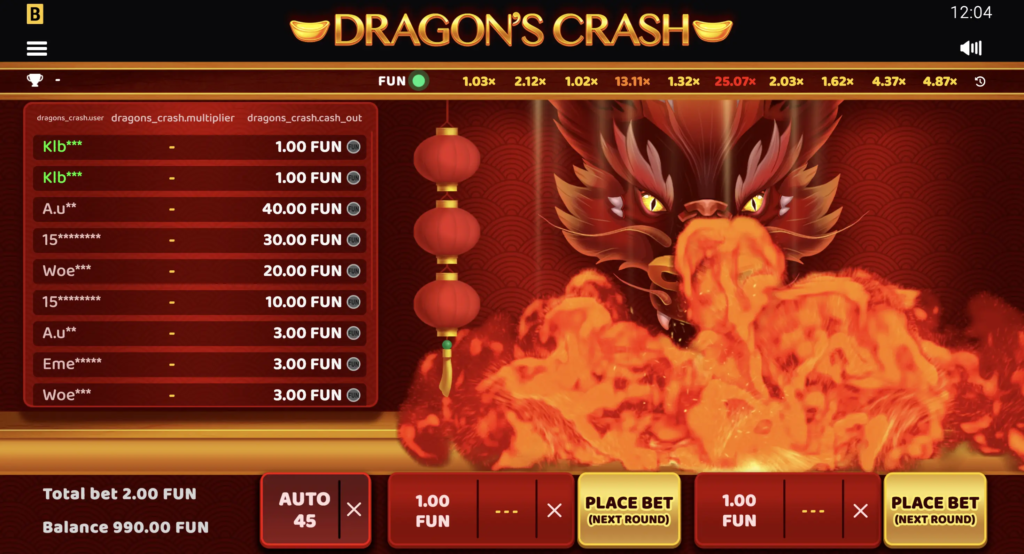 Em Dragon’s Crash, os jogadores podem obter vitórias substanciais, com o jogo oferecendo um pagamento máximo de até x10.000 de sua aposta, aumentando a emoção de cada rodada.