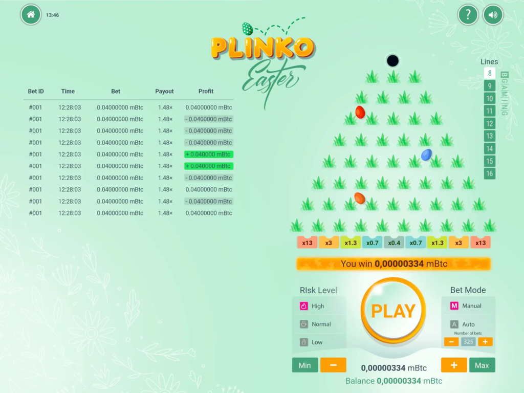 É um conhecido jogo de Plinko com o tema de Páscoa. Neste jogo casual, uma bola cai em um tabuleiro vertical e cai em uma das várias células com valores de ganhos. Um jogador pode escolher o número de linhas — de 8 a 16.