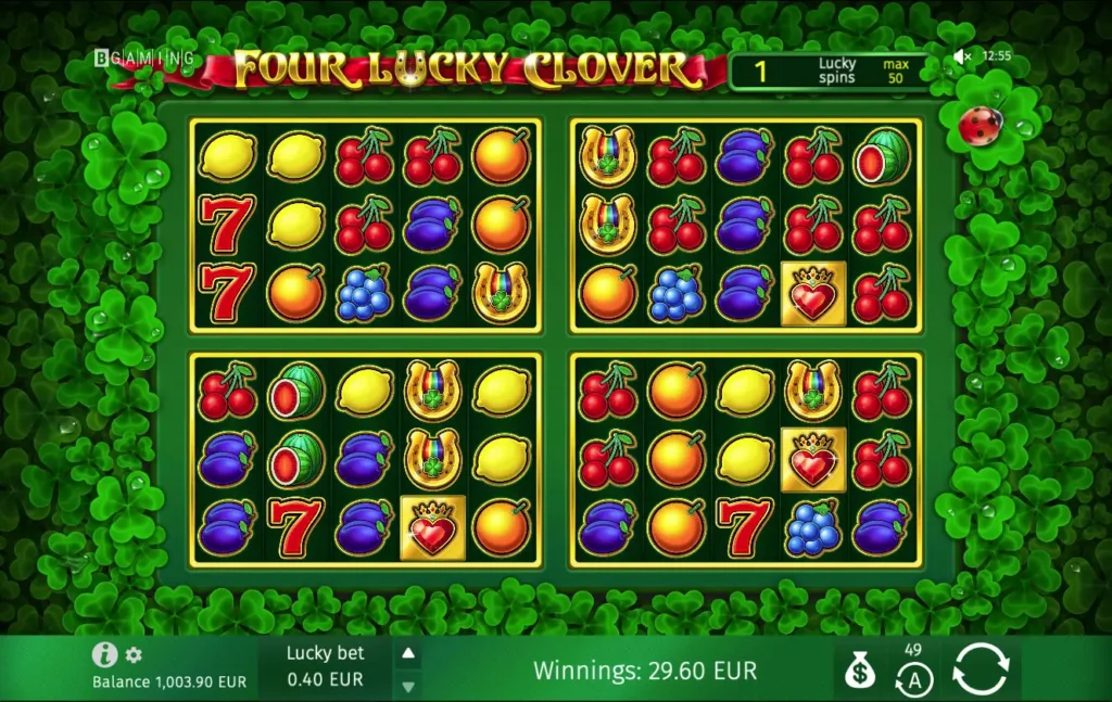 BGaming offers an exclusive opportunity to find dozens of fortune clovers in the Four Lucky Clover slot. This video slot presents a fresh approach to the timeless classic Irish folklore theme, brimming with fantastic features. Now, you have the chance to play and enjoy it from the comfort of your own home on any device.