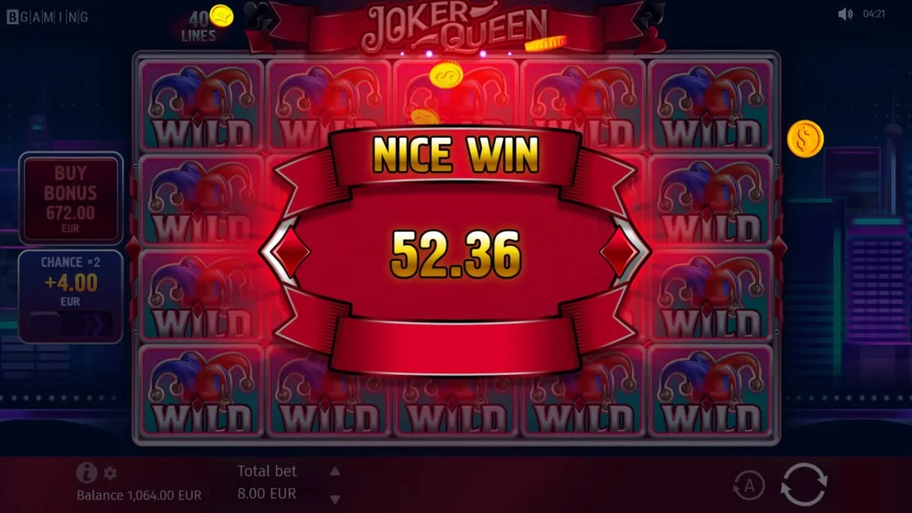 Joker Queen oferece aos jogadores a chance de ganhar até 1.172 vezes sua aposta. Com sua jogabilidade envolvente e potencial de vitória substancial, este jogo é uma ótima opção para quem busca experiências de caça-níqueis emocionantes e gratificantes.