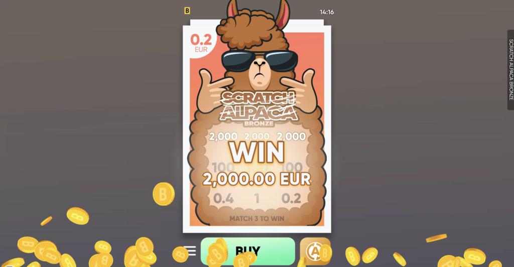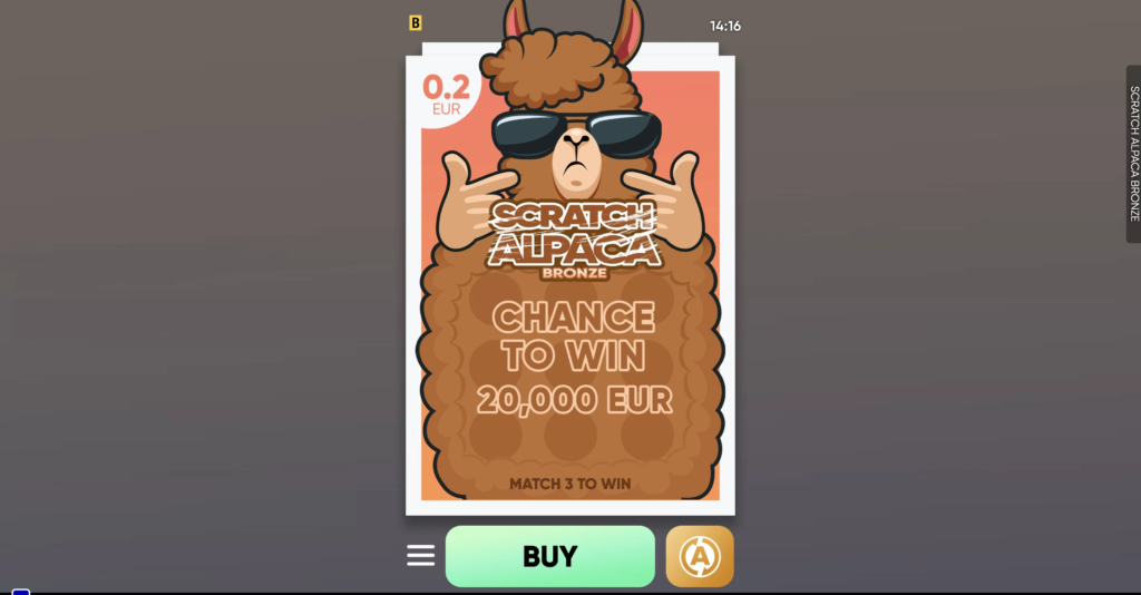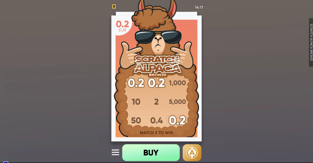 Nosso Bronze Scratch Alpaca marca a terceira edição do pacote BGaming de jogos com vitória instantânea, junto com os títulos Gold e Silver. Basta arriscar nove células do seu cartão de sorte e você ganha se acertar 3 valores!