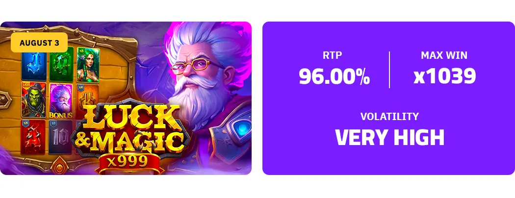 O mês de julho chegou ao fim, abrindo caminho para os emocionantes jogos online de agosto da BGaming. Temos três títulos fantásticos para apresentar: Luck & Magic, inspirado na indústria de jogos, Dice Million, um popular caça-níqueis com tema de dados, e Savage Buffalo Spirit MEGAWAYS™, uma versão aprimorada do nosso já popular lançamento.