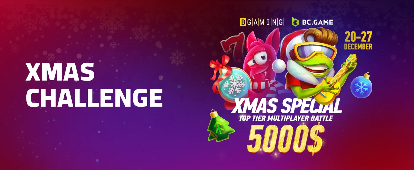 A BGaming e a BC.GAME comemoram a temporada de Natal lançando um torneio especial para jogadores com um prêmio total de 5.000$! O Batalha especial de multiplicadores de primeiro nível de Natal já começou e durará até 27 de dezembro.