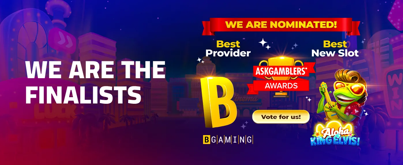 Temos o prazer de compartilhar que a BGaming está entre os finalistas do 5º Prêmio AskGamblers! Este ano, a BGaming foi selecionada em duas categorias de prestígio: Melhor Fornecedor e Melhor Novo Slot com Aloha King Elvis.