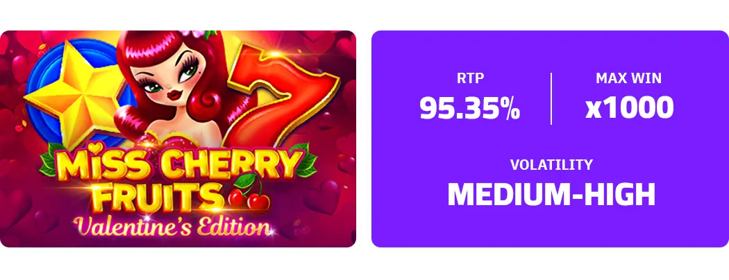 Comemore o feriado do amor com a lendária Miss Cherry Fruits, uma charmosa resina com tema de romance da fornecedora de jogos BGaming.