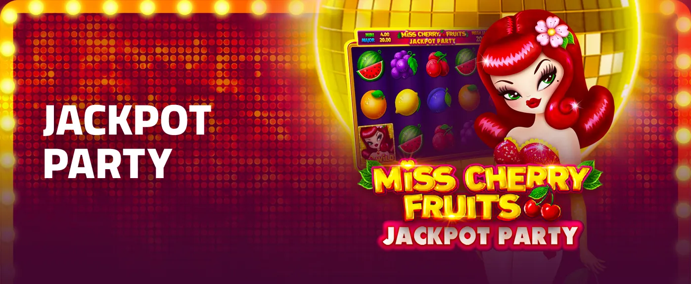 Miss Cherry Fruits Jackpot Party é um caça-níqueis Hold & Win que tem volatilidade média-alta e um RTP de 95,51% enquanto joga em um campo de 5 cilindros e 3 linhas com 25 maneiras de ganhar.